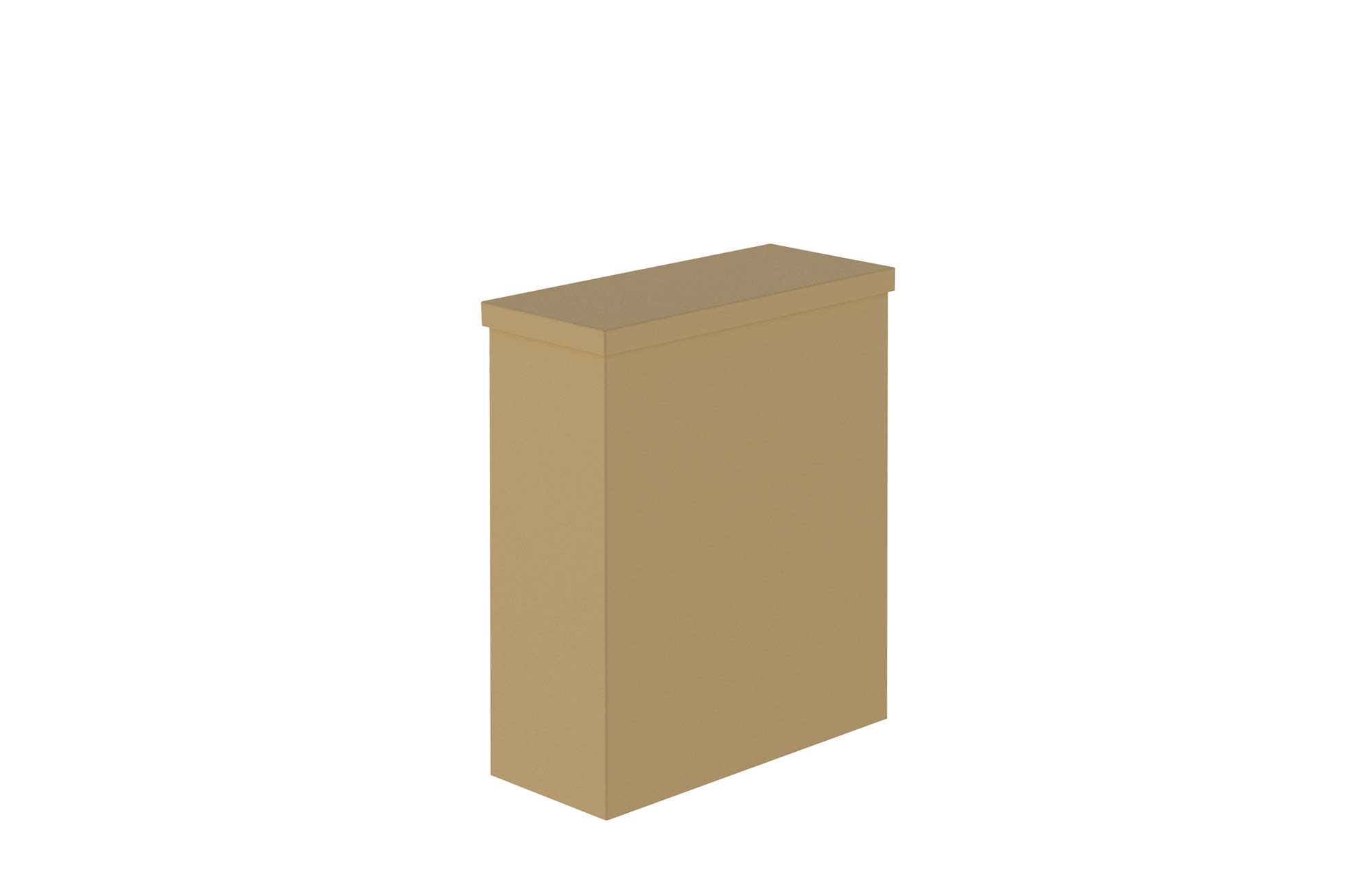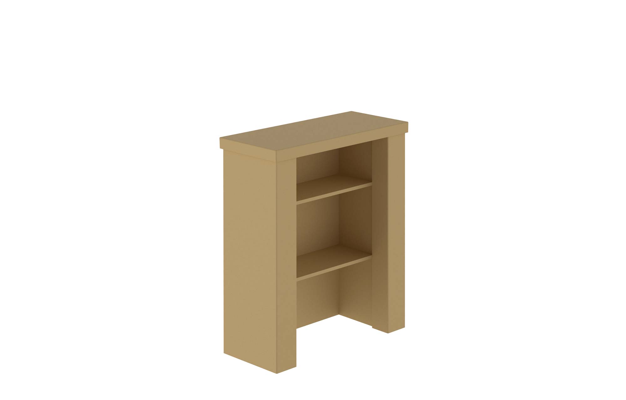 Plug-in reception counter, shelf made of solid honeycomb cardboard, cladding and cover made of brown corrugated cardboard, back open.